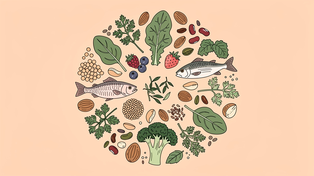 Tłuste ryby, orzechy włoskie i nasiona chia bogate w omega-3 obniżają insulinę, co pośrednio zmniejsza androgeny. Badania z udziałem kobiet z PCOS wykazały, że suplementacja zwiększa SHBG (globulinę wiążącą hormony płciowe), która wiąże testosteron i ogranicza jego biologiczną aktywność.